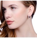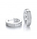 Two rows of cubic zirconia stones cover one half of these earrings and the other half a delicate design