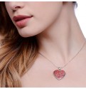 A heavenly red heart shaped locket with a delicate filigree silver overlay
