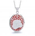 • An attractive filigree oval shape red locket graced wtih a silver rose