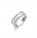 Sterling Silver ring set with baguette and round clear cubic zirconia stones