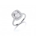 Sterling Silver ring with a rectangular centre cubic zirconia stone surrounded by small clear round cubic zirconia stones