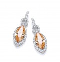 Stunning earrings with a champagne marquis stone surrounded by a row of sparkling clear cubic zirconia stones