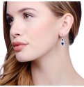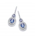 Pear and oval shape Azure blue cubic zirconia stones surrounded by clear cubic zirconias to create these captivating earrings