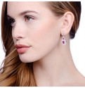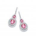 Pear and oval shape red cubic zirconia stones surrounded by clear cubic zirconias to create these captivating earrings