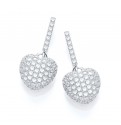 Cluster of cubic zirconia stones in a moulded heart shape dangling from a single row of cubic zirconia stones