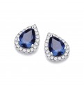 Sterling silver earrings set with a sapphire blue pear shaped cubic zirconia stone and clear round cubic zirconia stones