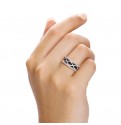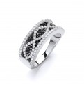 Dazzle wearing this eye catching black and clear cubic zirconia stone ring which has an alluring curvy criss cross design