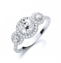 Irresistable three stone ring with small cubic zirconia stones surrounding larger stones and along shoulders