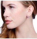 Rectangular red cubic zirconia stone surrounded by a row of clear cubic zirconia stones which completes these understated elegant drop earrings