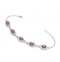 Sterling Silver bracelet set with red oval and clear round cubic zirconia stones