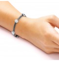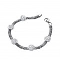 • Five beautiful discs set with cubic zirconia stones threaded through a gorgeous ruthenium mesh bracelet