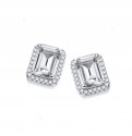 Sterling Silver stud earrings with a rectangular cubic zirconia stone surrounded by small round clear cubic zirconia stones