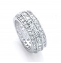 A stunning full eternity ring with a row of princess cut cubic zirconia stones centred between two rows of round cubic zirconia stones makes this ring irresistible