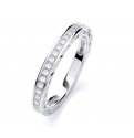 Stylish three quarter eternity ring with cubic zirconia stones that emulates casual elegance