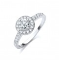 A hypnotic solitaire cubic zirconia stone which is enhanced by a collection of small round stones along the centre stone and shoulders