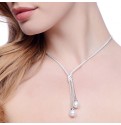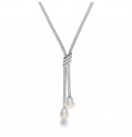Glorious mesh necklace with an elegant three row cubic zirconia detail which has a drop with two beautiful freshwater pearls