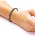 • A milgrain tubular magnetic bangle in ruthenium with three separate rows of cubic zirconia stones