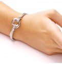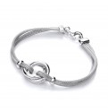 A multi strand mesh bracelet with a polished Interlocking hoop centre