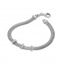 Elegant mesh bracelet with three decorative bars covered in cubic zirconia stones