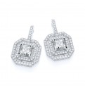 Princess cut cubic zirconia stone surrounded by two rows cubic zirconia stones to create beautiful drop earrings