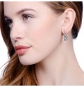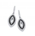 Exquisite pointed oval shape earrings in clear and black cubic zirconia stones with a hollow centre