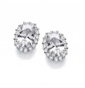 Sterling Silver stud earrings with a rectangular cubic zirconia stone surrounded by small round clear cubic zirconia stones