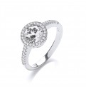 Large round cubic zirconia stone surrounded by small round cubic zirconia stones
